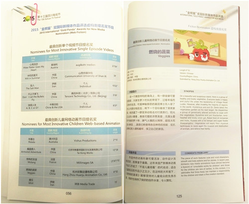 動(dòng)畫(huà)片《燃燒的蔬菜》榮獲2015四川電視節(jié)“金熊貓”提名獎(jiǎng)