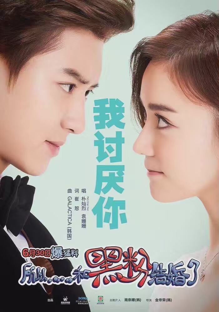 由喜劇者聯(lián)盟影業(yè)、博納影業(yè)、捷成中視精彩聯(lián)合出品,EXO成員樸燦烈、袁姍姍、姜潮以及韓國“少女時代”成員徐玄主演的愛情喜劇電影《所以……和黑粉結(jié)婚了》距離6月30日上映不足20天時間。由崔恕詞,GALACTICA曲,男女主角樸燦烈和袁姍姍獻唱的主題曲《我討厭你》,15日全網(wǎng)上線,甜蜜的聲線,完美詮釋有一種喜歡叫“我討厭你”。