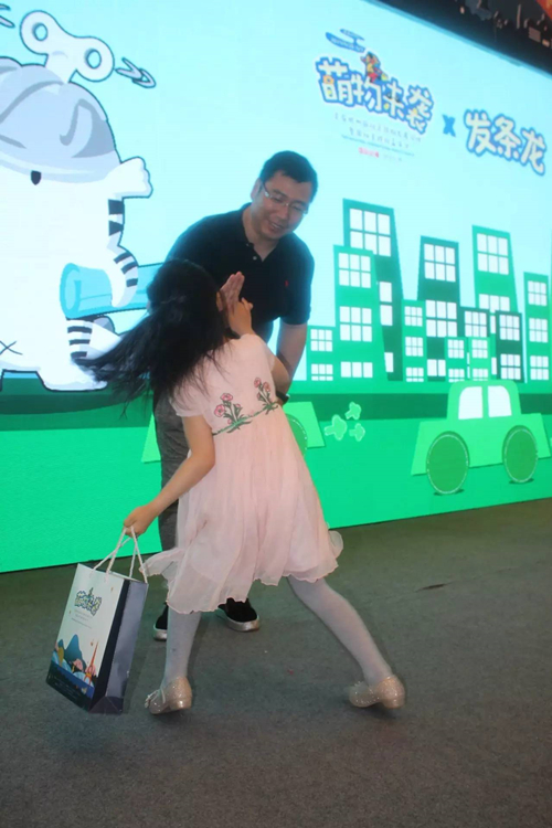獲得發(fā)條龍獎品的小公主興奮地和爸爸擊掌慶祝!