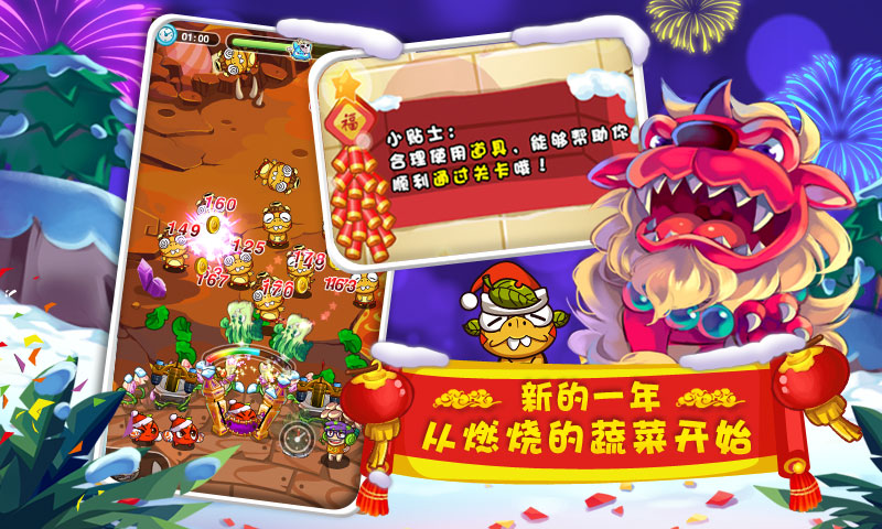 2015年02月06日《燃燒的蔬菜季節(jié)版》(2015新春版)即將在2月6日迎來版本更新!全新關卡,更多玩法、還有蔬菜前來報到!
