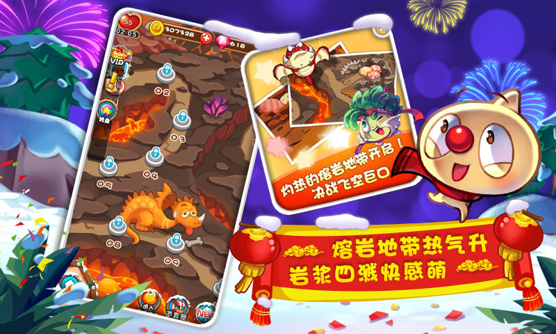 《燃燒的蔬菜季節(jié)版》(2015新春版)將會開啟第四場景“熔巖地帶”,全新場景總共40個關卡,不限于常規(guī)關卡,還會有危機關、障礙物關和boss關。在這些眾多的關卡中,除了要面對小火龍、火苗龍、巖盾螃蟹、巫術喵、噠噠鳥的圍攻,還要抵擋住火焰墻的強大攻勢,并且在危機關卡要解除“熔巖轟炸機”所帶來的定時炸彈危機,最后還要和我們的毒液龍、飛空巨口這兩個終極boss決一死戰(zhàn)!要如何突出重圍,就看如何運用蔬菜戰(zhàn)隊和那些可以增強戰(zhàn)斗力的道具啦!