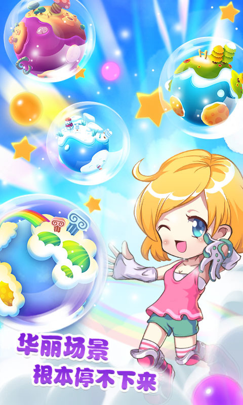 進入游戲后,首先映入眼簾的是萌萌噠的二次元畫面,超萌場景、超萌畫風,整個游戲都是萌萌噠!這Q萌畫風配上簡潔明了的文字內(nèi)容讓萌系界面更加眼前一亮,完全顛覆了印象中傳統(tǒng)泡泡游戲的靜態(tài)、呆板。一款泡泡游戲居然可以萌成這樣!