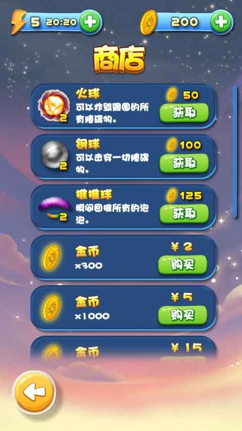 值得注意的是,游戲提供商城道具,增加了游戲的趣味性和隨機(jī)性,與之前的傳統(tǒng)泡泡相比可謂大大提高了耐玩度,隨機(jī)出現(xiàn)的小陷阱,可能是驚喜,但也有可能一招致命。