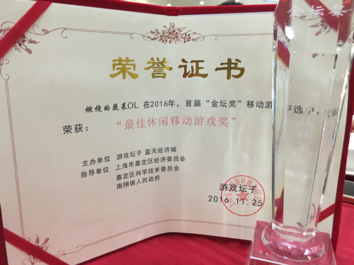 “金壇獎”由游戲壇子、藍(lán)天經(jīng)濟(jì)城聯(lián)合主辦,旨在聚合游戲行業(yè)優(yōu)質(zhì)資源,推動游戲文化產(chǎn)業(yè)的發(fā)展,把最優(yōu)秀的、最好玩的游戲推薦給玩家?!敖饓劇钡墨@獎?wù)呔钱a(chǎn)業(yè)中的佼佼者,經(jīng)過為期15天的投票與嚴(yán)格、謹(jǐn)慎的評選,最終評選出了一批表現(xiàn)優(yōu)異的游戲和有突出貢獻(xiàn)的企業(yè),其中,《燃燒的蔬菜OL》嶄露頭角,奪得2016“最佳休閑移動游戲獎”。